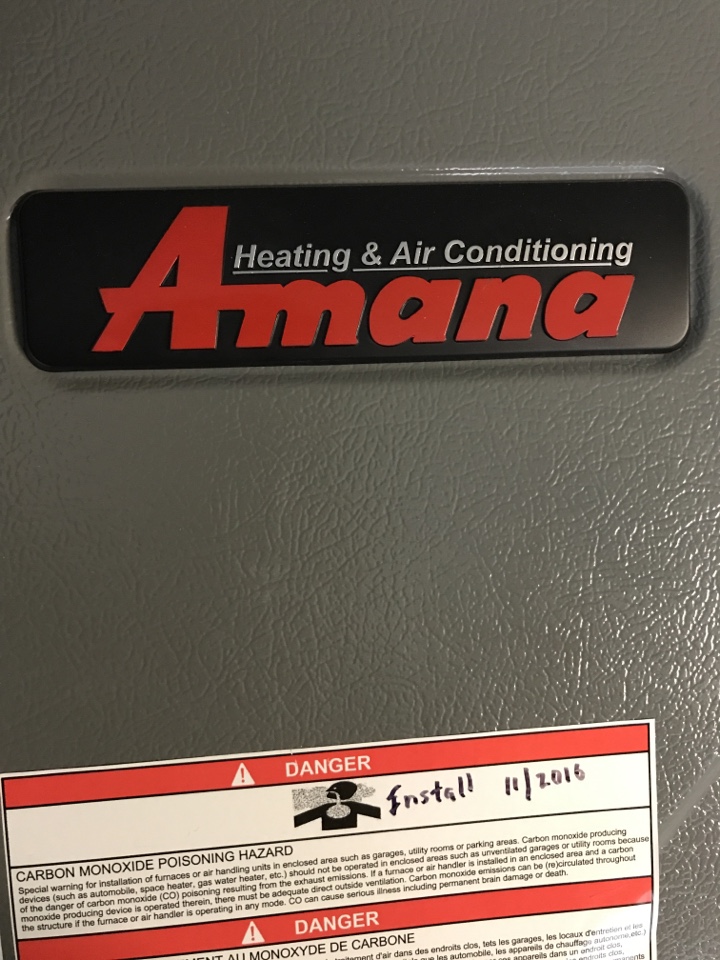 New Amana furnace an ac